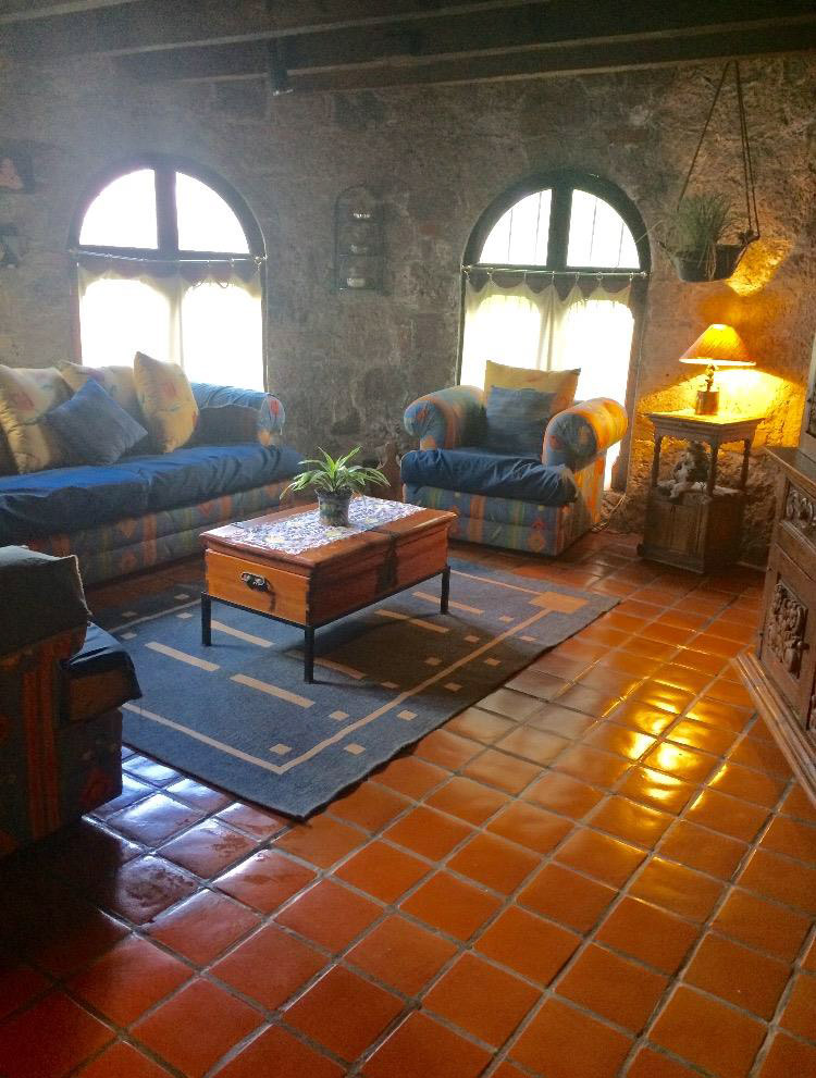 Techos de madera, recamaras de duela, mosaico rustico vidriado, puertas talladas . en madera, muros de 30cm..